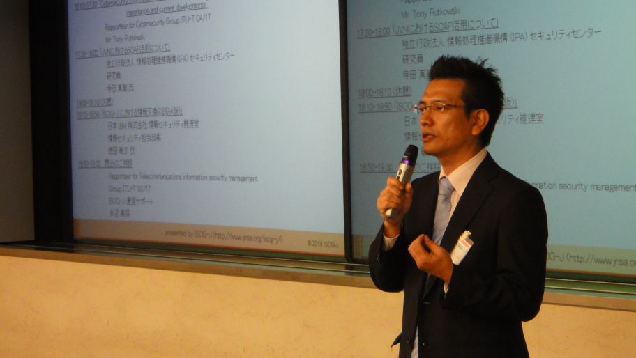 Dr. Terada from IPA had a lecture titled "The Use of SCAP on JVN" in which he introduced Japan Vulnerability Notes (JVN) and the framework of MyJVN.