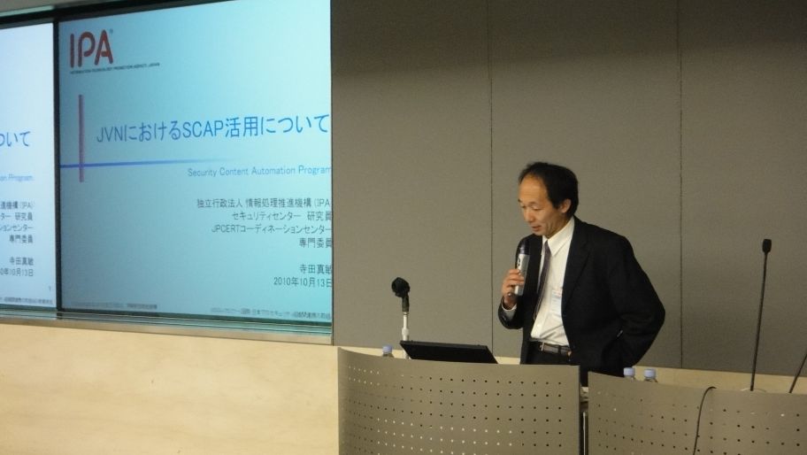 JVN is widely recognized in Japan. In this lecture, Dr. Terada has presented not only to describe JVN but also to show how the SCAP technologies are applied to MyJVN. It was unique opportunity to share such information in public.